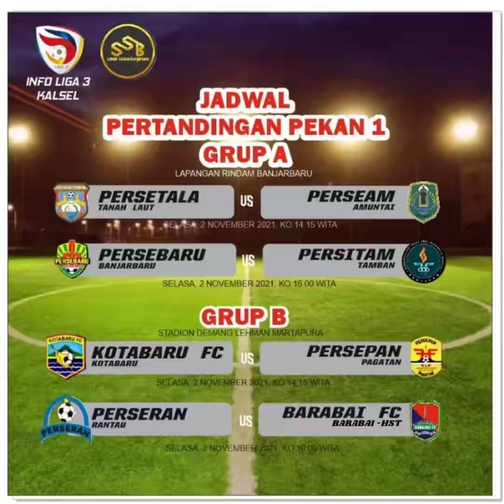 Jadwal pertandingan putaran pertama Liga 3 Asprov Kalsel 2021, Persebaru Banjarbaru yang masuk dalam Grup A akan bertanding sore ini melawan Persitam. Pertandingan akan berlangsung di lapangan Rindam, Landasan Ulin, Banjarbaru. (kanalkalimantan.com/al)