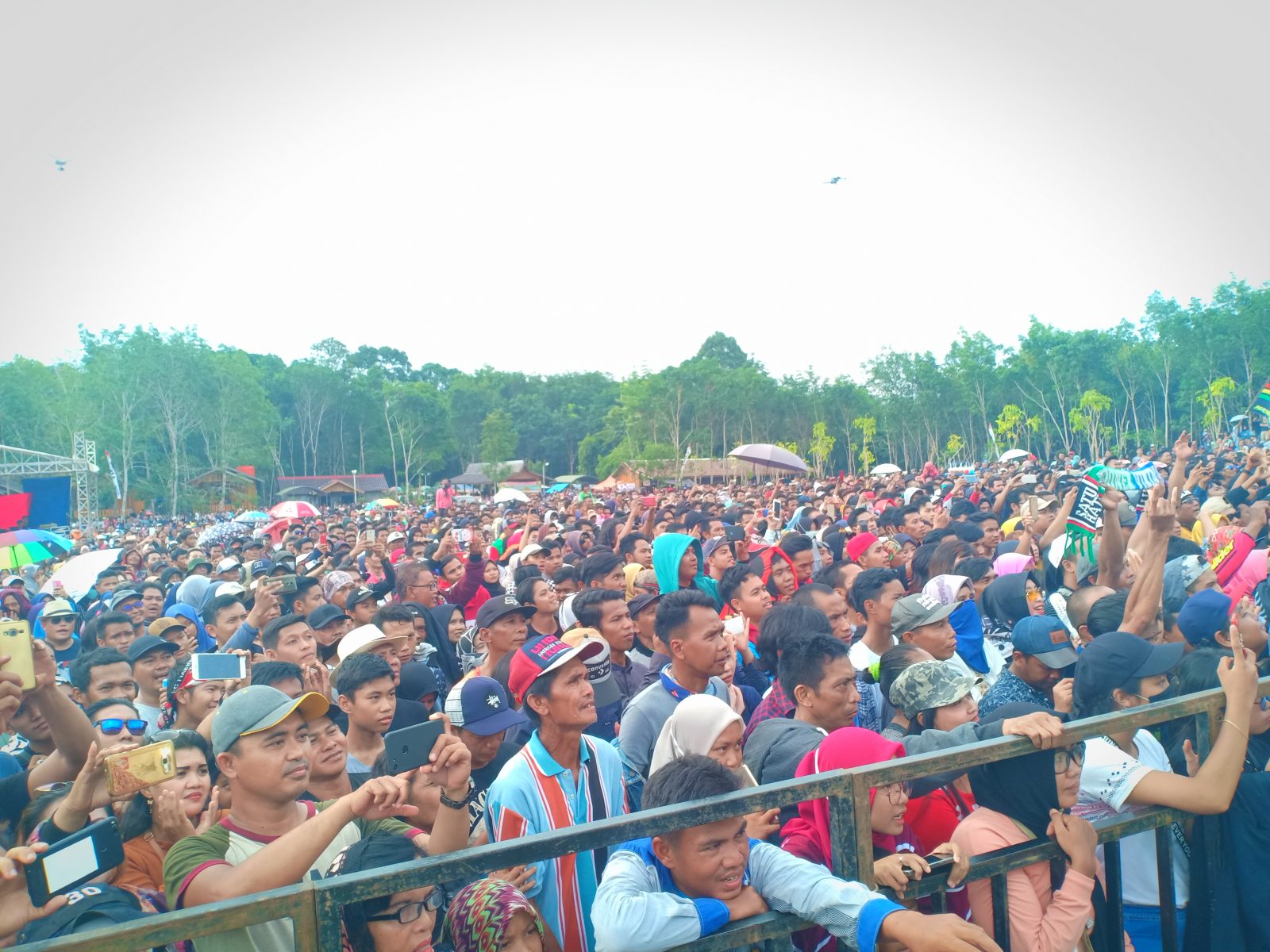 MARTAPURA, Slank dan Inka Christie sukses mengguncang ribuan masyarakat pada deklarasi Geopark Meratus di Kiram Park, Kecamatan Karang Intan, Kabupaten Banjar, Minggu (24/2) sore. Bahkan Gubernur Sahbirin Noor juga ikut berkolaborasi dengan salah satu bintang tamu.
