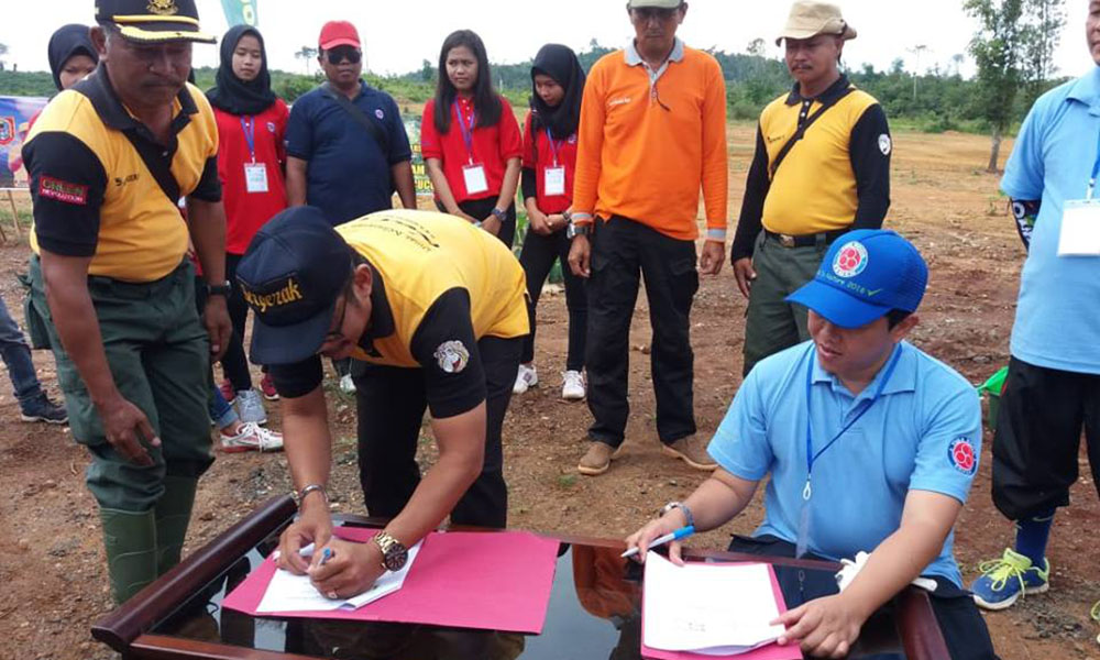 BANJARBARU, KPH Cantung selalu berupaya dan beinovasi untuk mensukseskan Program Gubernur Kalsel tentang Gerakan Revolusi Hijau di Bumi Antasari. Hari ini, KPH Cantung Melalui Dishut Prov.Kalsel bekerjasama dengan IPPKH PT ITP melaksanakan kegiatan yang sangat penting dalam acara peletakan batu pertama pembangunan persemaian permanen, kerjasama Dishut Prov Kalsel dan IPPKH PT.ITP, Minggu (11/11).