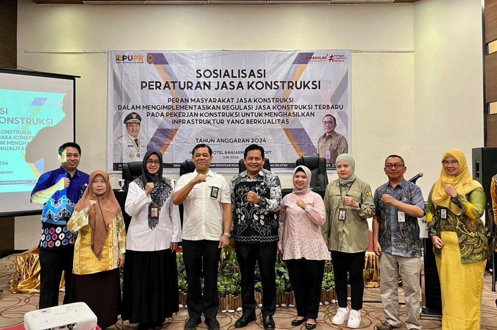 KANALKALIMANTAN.COM, BANJARBARU – Dinas Pekerjaan Umum dan Penataan Ruang (PUPR) Kalsel mengadakan Sosialisasi Peraturan Jasa Konstruksi dengan tema “Peran Masyarakat Jasa Konstruksi Dalam Mengimplementasikan Regulasi Jasa Konstruksi Terbaru Pada Pekerjaan Konstruksi Untuk Menghasilkan Infrastruktur yang Berkualitas” di Banjarbaru, Kamis (20/6/2024).