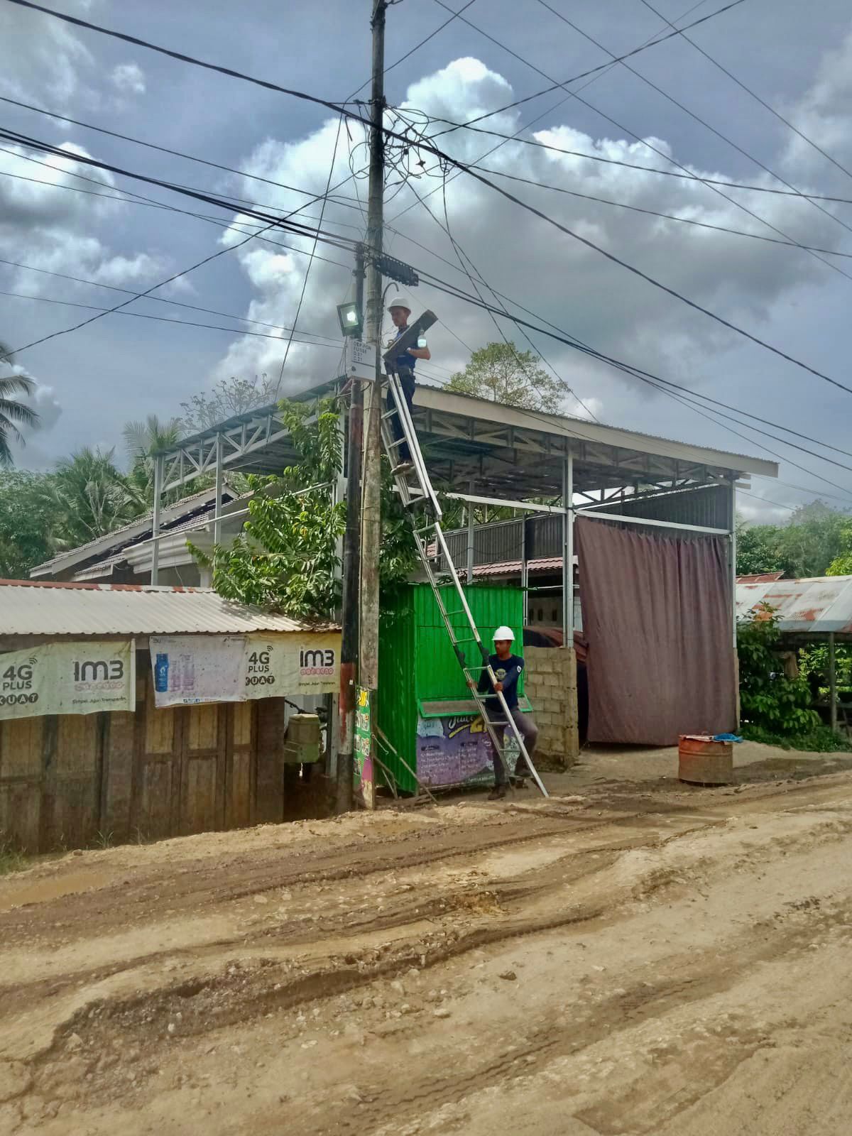 KANALKALIMANTAN.COM, PARINGIN– Dinas Perhubungan Kabupaten Balangan memasang lampu sorot untuk meminimalisir kecelakaan di jalur Desa Mantimin, Kecamatan Batumandi, Kabupaten Balangan, Kalimantan Selatan yang mengalami kerusakan sangat parah.