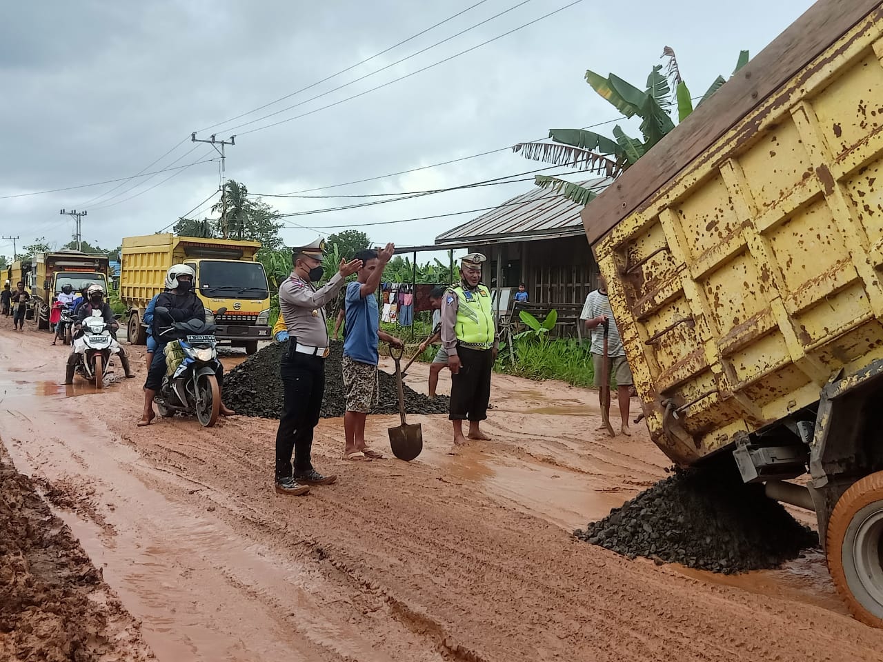 “Jalannya rusak bahkan berlubang. Kalau hari hujan banyak mobil dan truk yang terjebak lumpur di lokasi dan membuat macet,” kata Kasat Lantas.