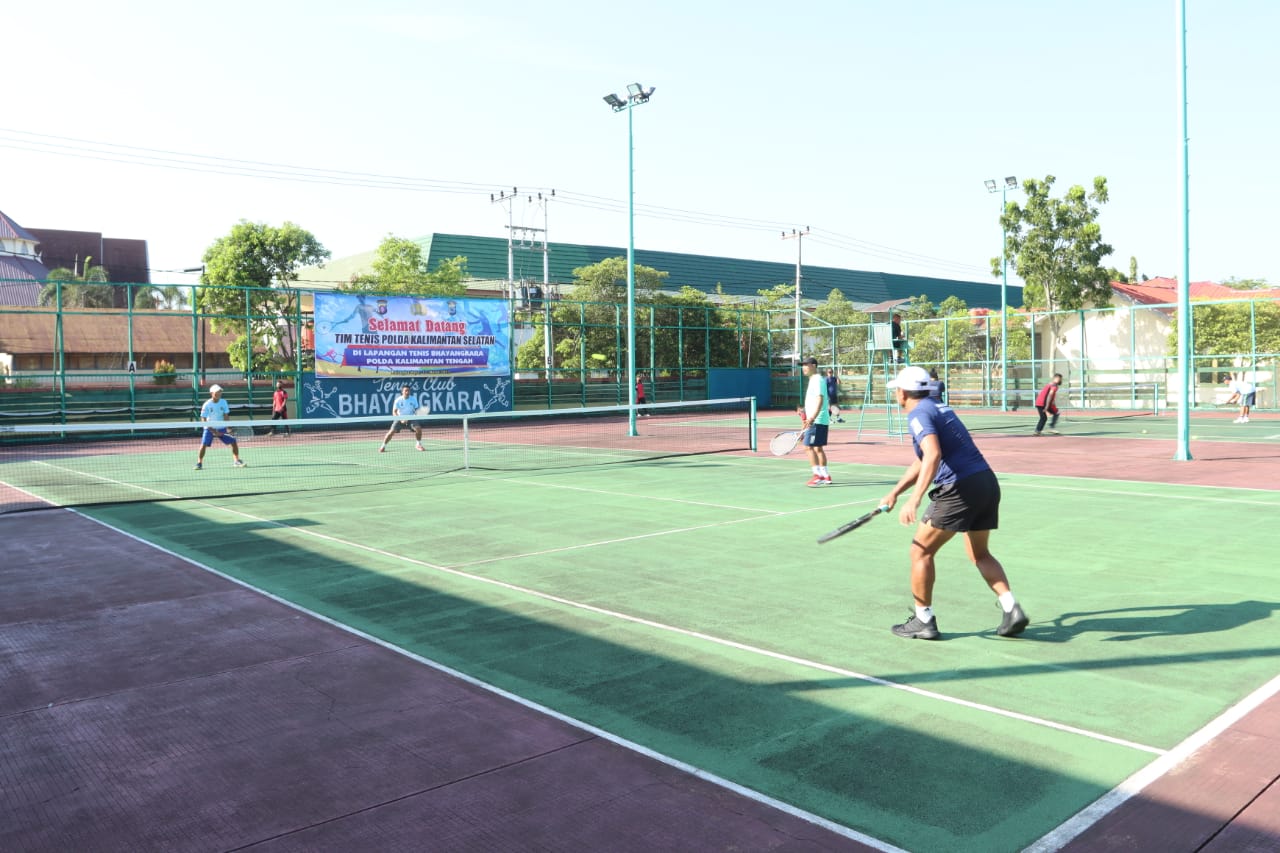 Jalin Kekompakan, Polda Kalsel dan Polda Kalteng Tanding Tenis Lapangan