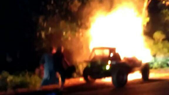 ‘Jeep’ Milik Mustofa Hangus Terbakar di Antasan Senor Ulu