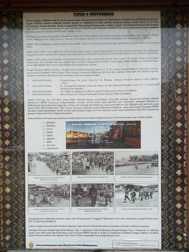 KANALKALIMANTAN.COM, BANJARMASIN – Sebelum Pertempuran Surabaya pecah pada 10 November 1945 yang menjadi cikal bakal lahir Hari Pahlawan, Banjarmasin lebih dulu melakukan perlawanan terhadap penjajah pada 9 November 1945.