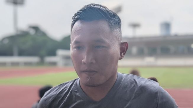 Pelatih tim nasional putri Indonesia Rudy Eka Priyambada memberikan pernyataan kepada pewarta di Stadion Madya Gelora Bung Karno, Jakarta, Senin (10/1/2022). Rudy memaparkan perkembangan skuadnya menjelang Piala Asia Putri 2022 di India yang berlangsung pada 20 Januari-6 Februari 2022. Foto : Michael Siahaan