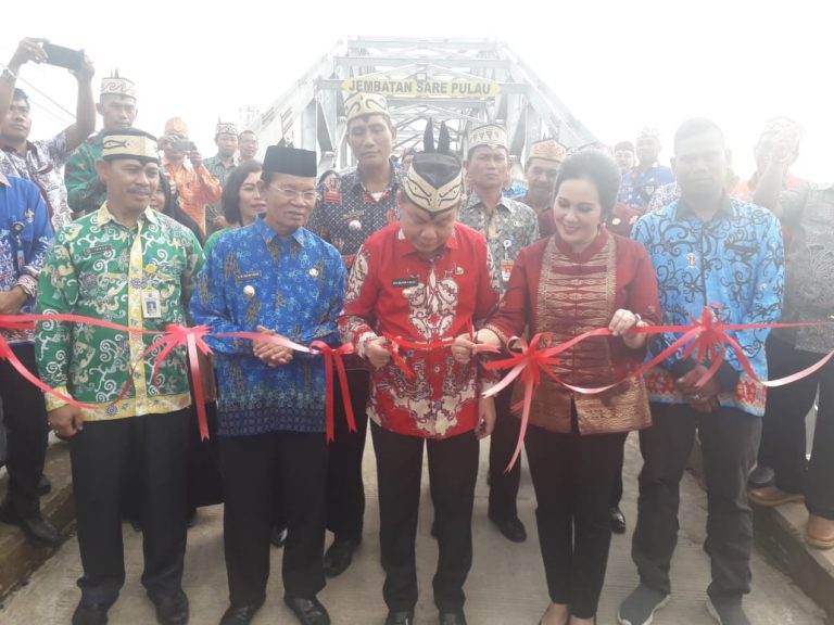 KANALKALIMANTAN. COM, KUALA KAPUAS – Jembatan Sare Pulau yang letaknya di Kapuas Seberang itu pernah ambruk karena ditabrak tongkang bermuatan pasir, sekarang oleh pemerintah daerah dibangun kembali, menghabiskan dana lebih dari Rp 7 miliar. Kamis (12/3/2020) pukul 15.30 WIB, Bupati Kapuas Ben Brahim S Bahat meresmikan jembatan Sare Pulau sekaligus penandatanganan prasasti.
