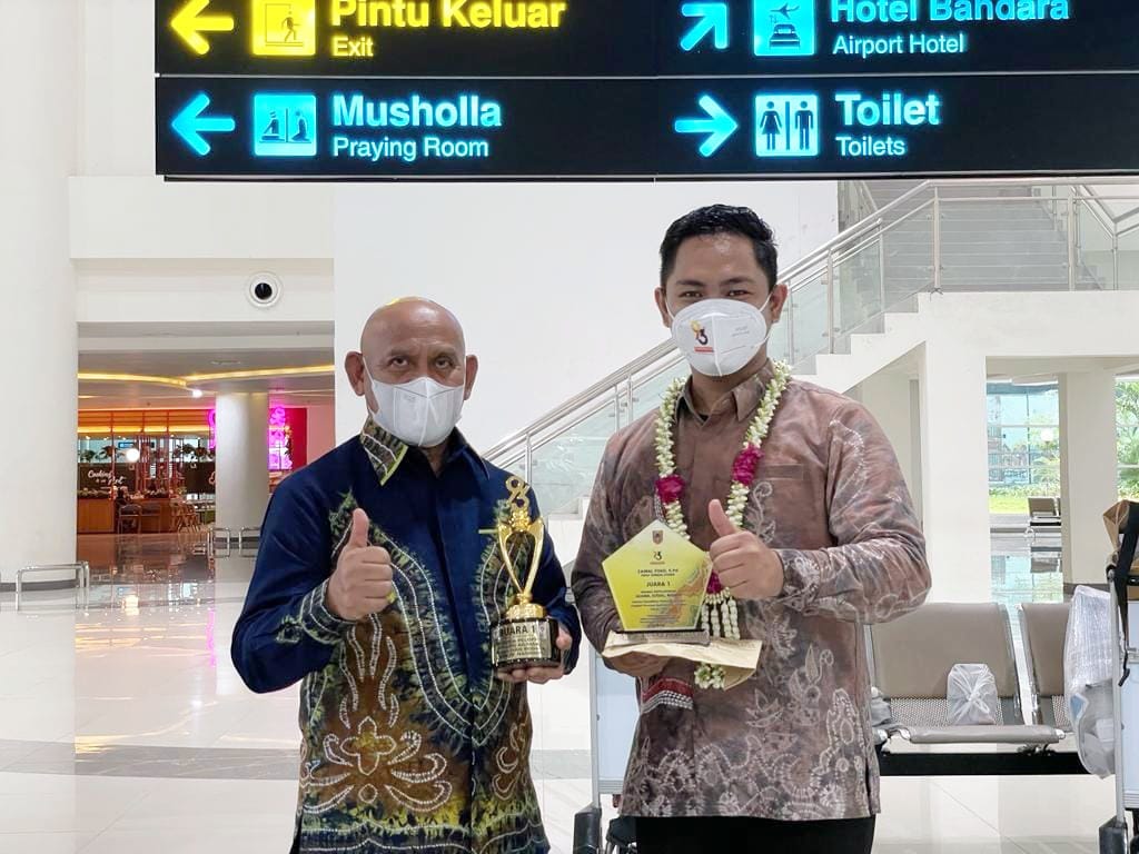 KANALKALIMANTAN.COM, BANJARBARU – Kedatangan Zainal Fuad setelah mengharumkan nama Kalimantan Selatan di ajang pemuda pelopor tingkat nasional tahun 2021, disambut suka cita Bupati Hulu Sungai Utara (HSU), H Abdul Wahid HK bersama Dinas Pemuda Olahraga dan Pariwisata (Disporapar) Provinsi Kalimantan Selatan (Kalsel) saat tiba di Bandara Syamsudinnor Banjarbaru, Jumat (29/10/2021) petang.