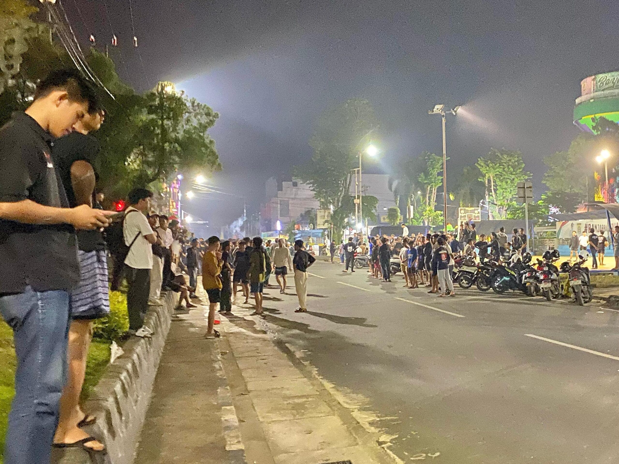 Suasana kawasan lapangan Rebatig Banjarbaru di Jalan Pangeran Suriansyah dipenuhi remaja menggelar judi berkedok adu lari, Rabu (5/3/2024) dini hari. Foto: ist