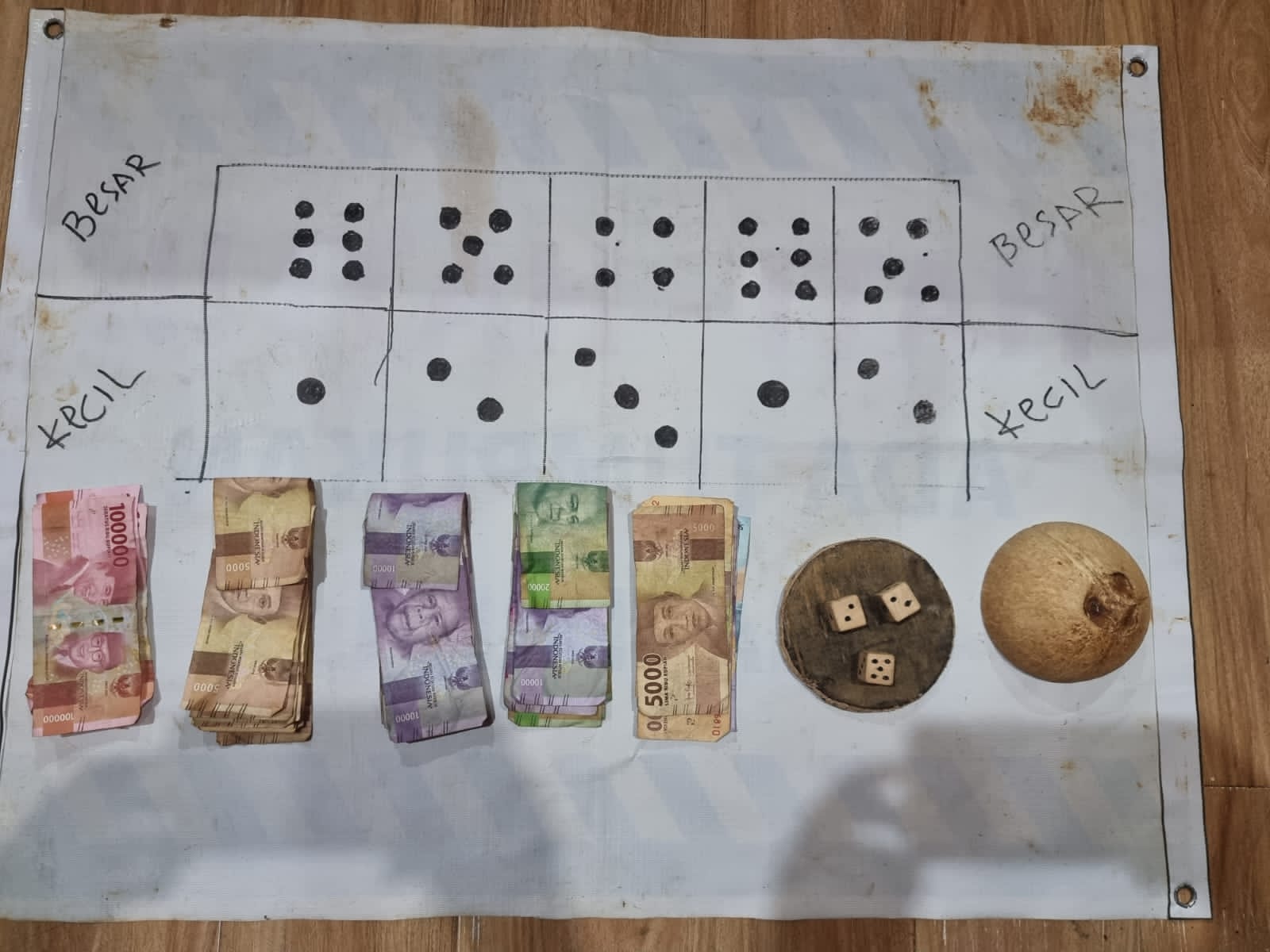 Tak mau buruan lepas, Unit Resmob Satreskrim Polres Tanbu membekuk SP (30) diduga berperan sebagai bandar judi dadu, MS (23) ,MM (34), SW (41), YT (40) dan AS (20) para pemasang dari perjudian jenis dadu tersebut.