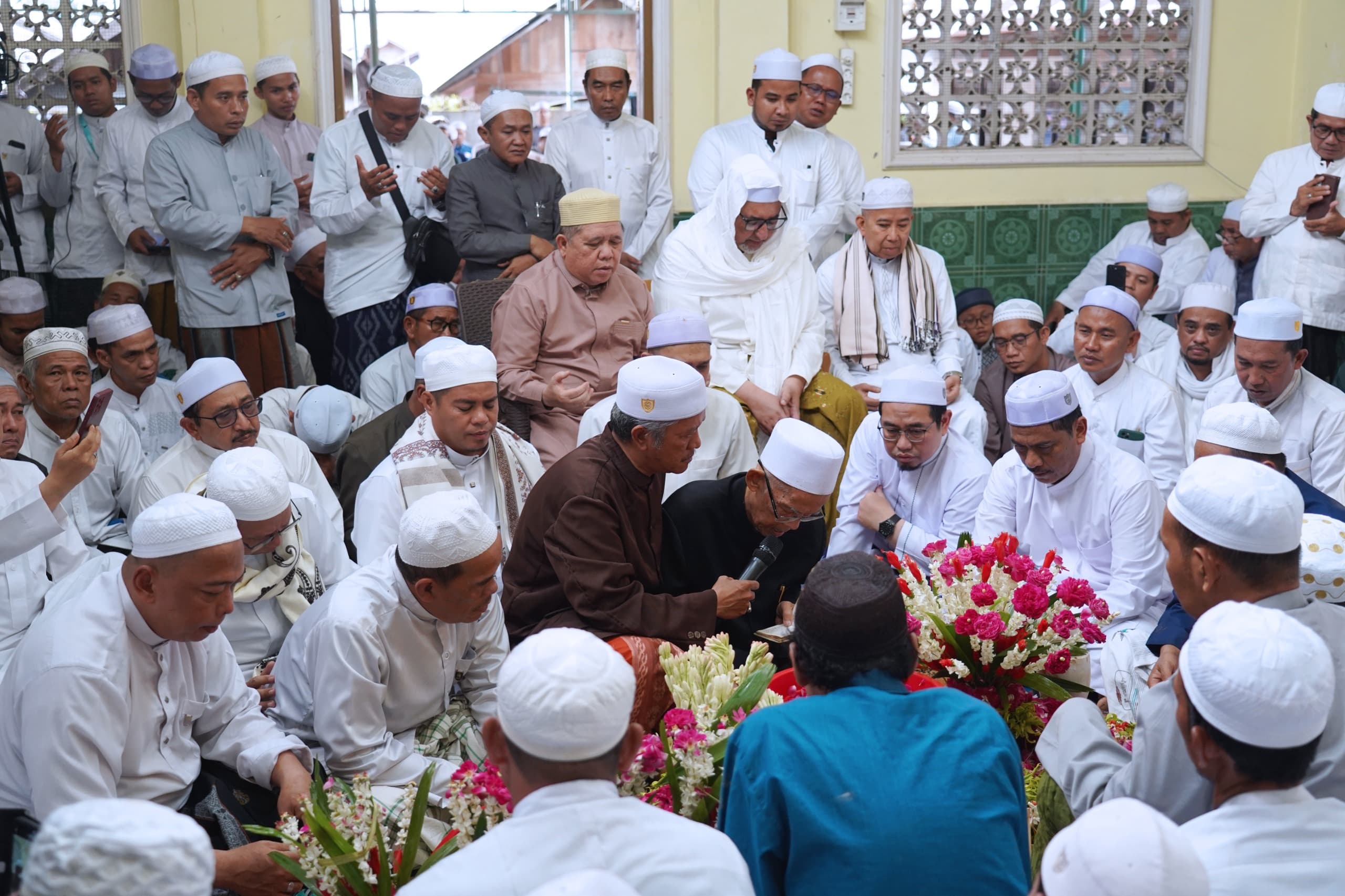 Habib Idrus dengan suara bergetar menyampaikan duka cita mendalam atas wafatnya Abuya KH M Syukri bin Unus.