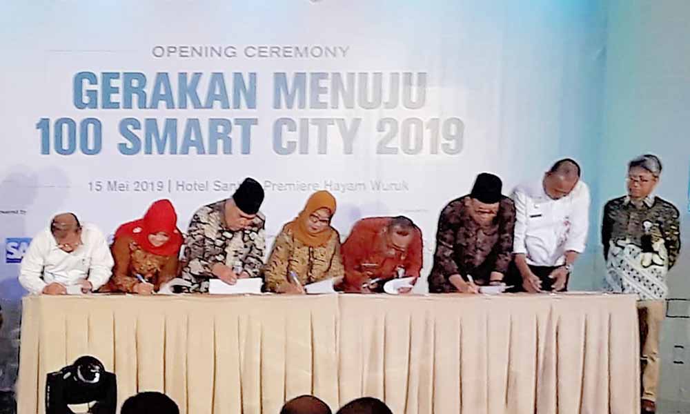 Penandatanganan Gerakan Menuju 100 Smart City 2019 diselenggarakan pada Rabu (15/5/2019) di Grand Ballroom Hotel Santika Premiere Hayam Wuruk Jakarta.