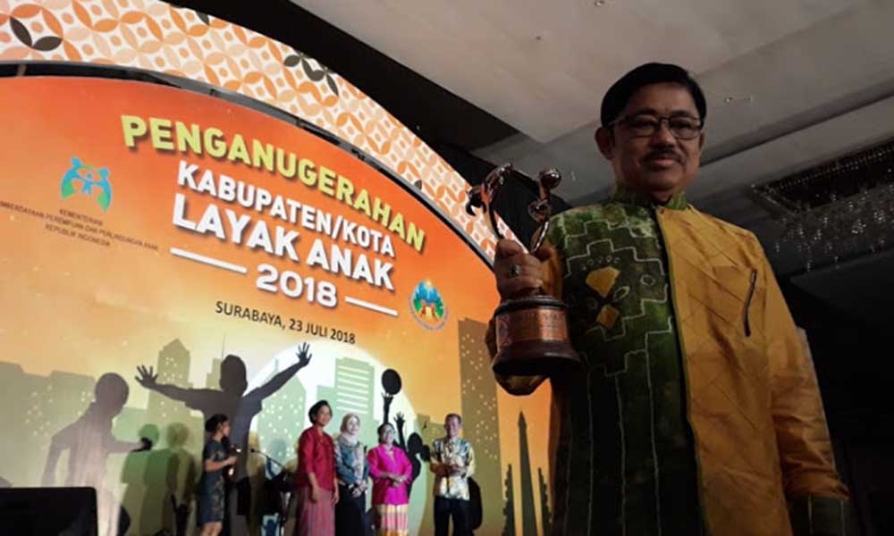 Penghargaan diberikan Menteri Pemberdayaan Perempuan dan Perlindungan Anak Yohana Susana Yambise diterima Sekda Banjar Ir H Nasrunsyah di Gedung Dyandra Convention Center, Surabaya, Minggu (23/7) malam. Penghargaan yang diberikan kepada beberapa daerah yang mendukung pemenuhan hak dan perlindungan anak.