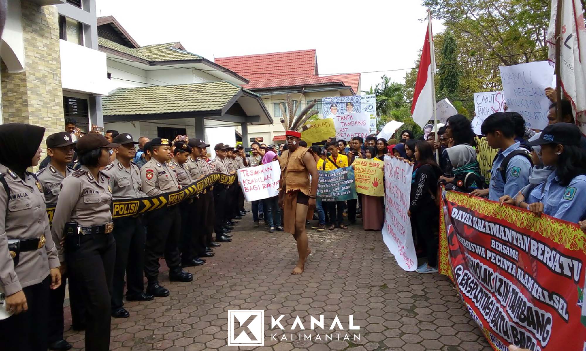 Sekitar pukul 09.00 Wita, masa pendemo dari berbagai elemen seperti DKB, DAD, LSISK, BEM Unlam, KAMMI, Mapala Piranha, Sylva, Justitia, Uniska, Impas B, Stienas, Marabunta, Kompas Borneo Unlam, KM2 HST, Asrama Loksado, MPA Meratus, Gramenea, Apache, Mahipa, dan Gilmarpala, berkumpul di Lapangan Murjani. Sebelum dimulai, mereka menggelar ritual adat dayak Kaharingan dipimpin oleh Dewan Adat Dayak, Adi Dayak selaku damang (ketua adat) untuk melakukan ritual do’a demi kelancaran aksi.