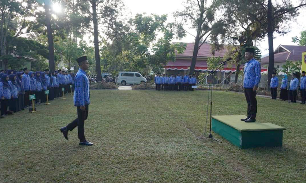 BANJARBARU, Mengambil tempat di halaman kantor, Dinas Kehutanan Provinsi Kalimantan Selatan menggelar apel gabungan HUT ke-74 RI, Sabtu (17/8).