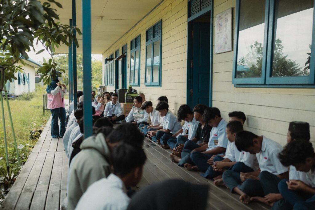 Akses menuju lokasi yang hanya dapat ditempuh melalui jalur sungai memberikan kesan mendalam bagi rombongan, pengangkutan material sarana dan prasarana sekolah menggunakan kelotok memerlukan kehati-hatian ekstra.