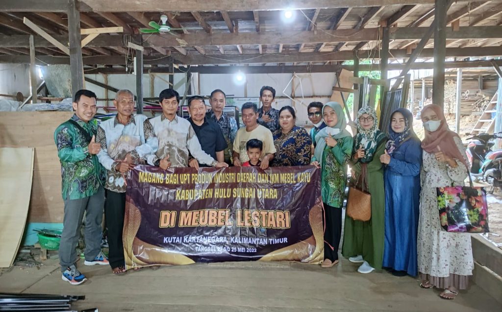 Di dampingi Pelaksana Tugas (Plt) Kepala Diskoperindag UKM dan staf industri, ada 12 orang dari pengrajin magang UPT Produk Industri Daerah dan Pengrajin Meubel Kayu asal HSU yang melakukan studi kaji ke Kabupaten Kutai Kertanagara, Kaltim.