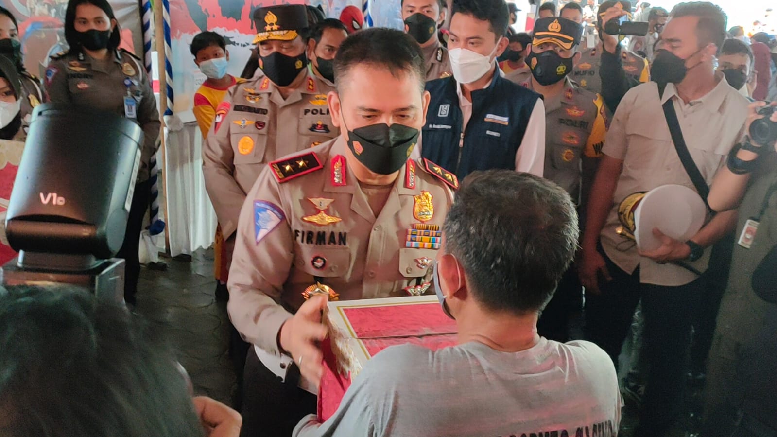 Pada momen tersebut, Kakorlantas Polri menyerahkan hadiah undian umroh gratis kepada Saderi yang sudah mengikuti program vaksin.