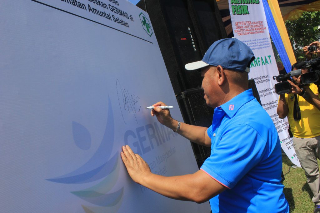 Kepala Dinas Kesehatan HSU dr. H. Agus Fidliansyah menyampaikan apresiasi atas inisiatif Kecamatan Amuntai Selatan dalam menggerakkan kampanye Germas. Hal ini merupakan gerakan kampanye yang pertama di kecamatan.