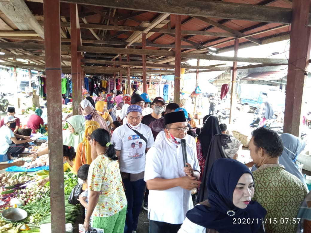 KANALKALIMANTAN.COM, BANJARBARU – Mengakhiri jadwal kampanye di Kabupaten Kotabaru, calon gubernur nomor 2 Denny Indrayana tak berhenti menyapa warga. Ia menyempatkan diri bertemu masyarakat di Pasar Bungkukan, Kecamatan Kelumpang Barat, serta menghadiri sejumlah acara pernikahan yang digelar warga setempat, Minggu (15/11/2020).