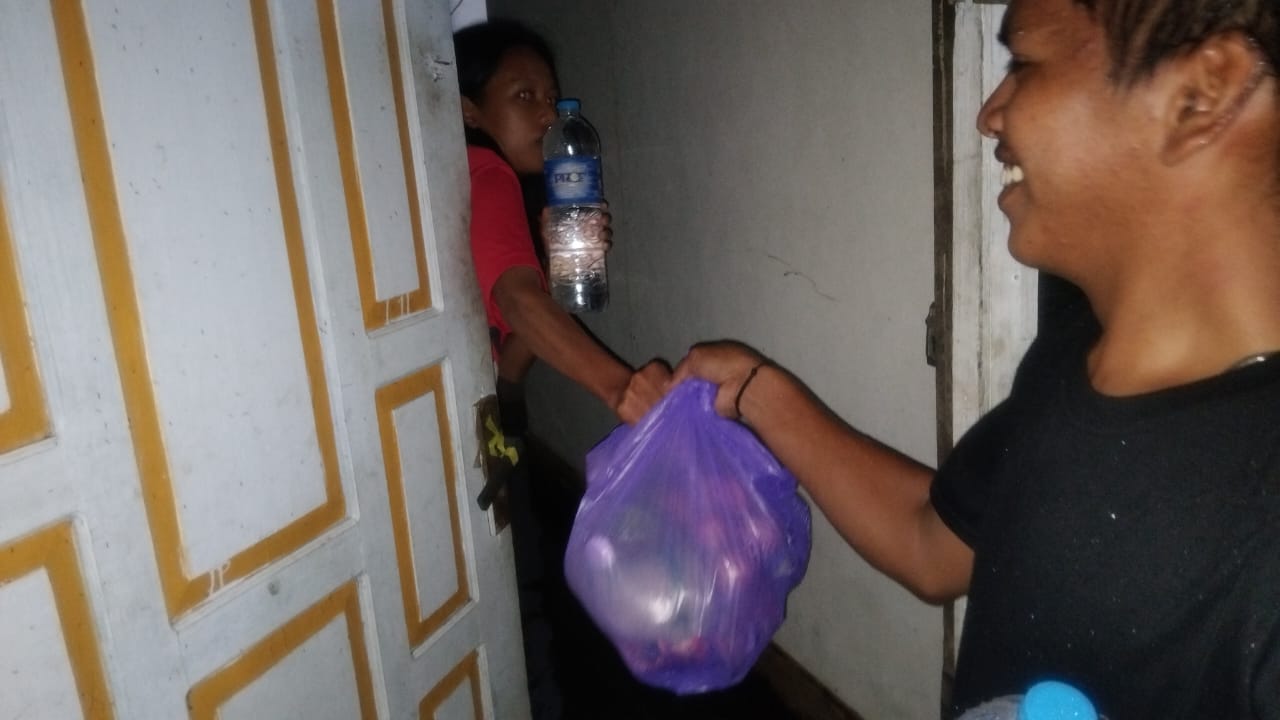 Meski hanya menghantarkan 80 paket Sembako dari donatur yang enggan disebut nama, Tim “Kanalkalimantan Peduli” bersama anggota MPA Fisipioneer menyerahkan langsung ke rumah-rumah warga terdampak banjir.