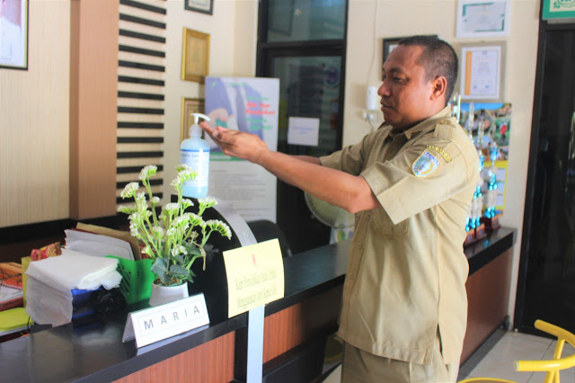 Dia meminta agar para karyawan untuk sering cuci tangan dan menggunakan cairan hand sanitizer yang telah disediakan. Begitupula dengan masyarakat yang datang, harus diingatkan untuk menggunakan cairan hand sanitizer.