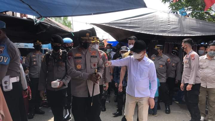 Dalam kunjungan ke Kabupaten Kapuas itu, Kapolda Nanang Avianto bersama rombongan meninjau vaksinasi massal kepada para pedagang pasar Sabtu di Jalan Cilik Riwut Kelurahan Selat, Kuala Kapuas.