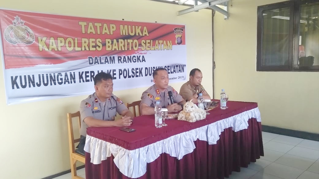 BUNTOK, Pejabat baru di wilayah hukum Barito Selatan, Kapolres Barsel AKBP Devy Firmansyah SIK menggelar tatap muka dengan sejumlah tokoh masyarakat dan tokoh agama di Markas Kepolisian Sektor (Mapolsek) Dusun Selatan (Dusel), Selasa (26/11).