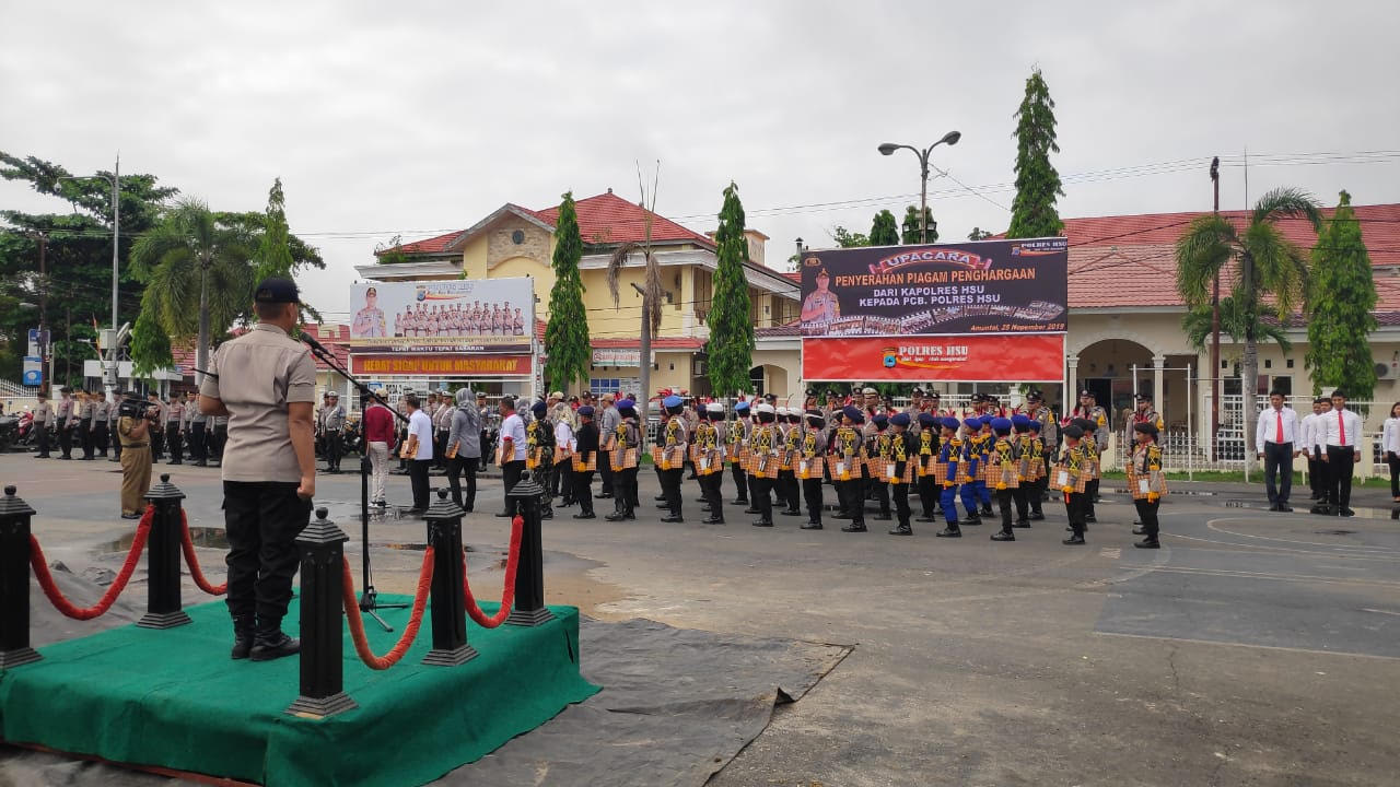 Kapolres HSU AKBP Ahmad Arif Sopiyan yang bertindak selaku inspektur upacara dalam arahannya mengaku bersyukur dan bangga atas raihan prestasi Pocil Polres HSU yang telah mengharumkan nama daerah. Juara 1 dalam lomba polisi cilik tingkat nasional Korlantas Polri merupakan bentuk prestasi yang membanggakan.