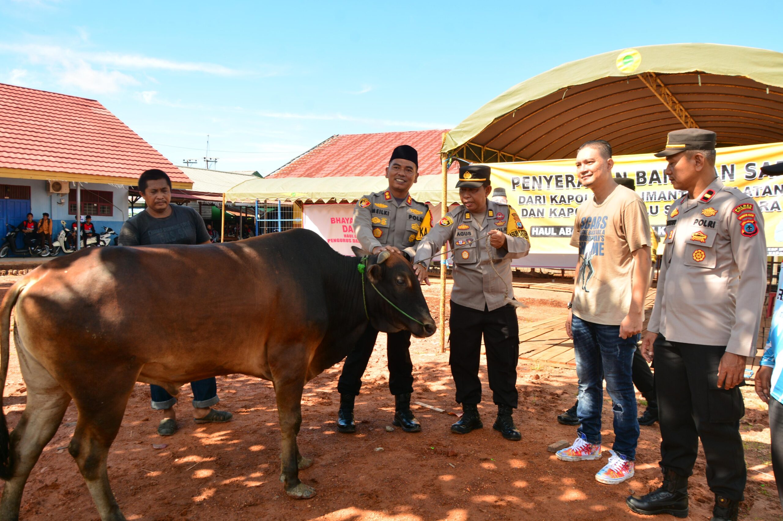 KANALKALIMANTAN.COM, AMUNTAI – Kapolda Kalimantan Selatan Irjen Pol Rosyanto Yudha Hermawan dan Kapolres Hulu Sungai Utara (HSU) AKBP Meilki Bharata menyumbangkan tiga ekor sapi untuk mendukung kegiatan keagamaan Haul ke-1 KH Asmuni atau Guru Danau.