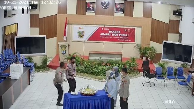 Dalam video berdurasi 43 detik itu awalnya terlihat korban tengah berdiri di samping meja yang di atasnya terdapat nasi tumpeng. Di belakang meja tersebut terpasang banner bertuliskan Baksos Akabri 1999 Peduli.