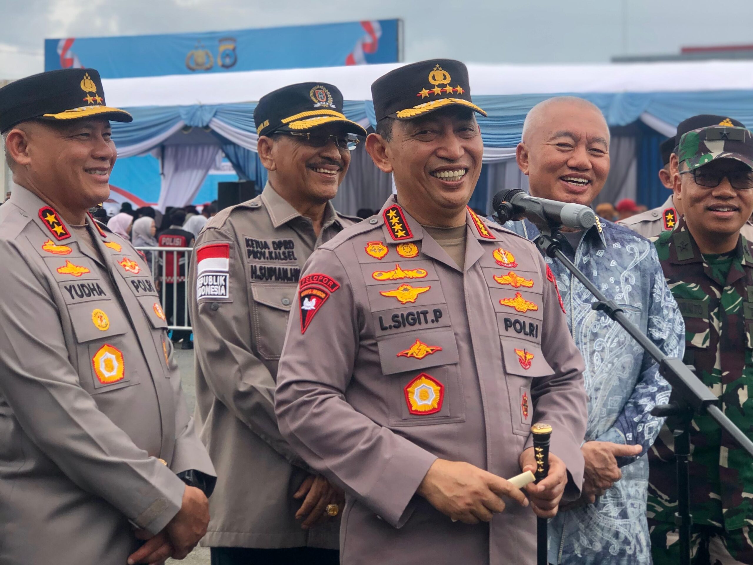 Kapolri Jenderal Sigit saat berkeliling meninjau gedung Mapolda yang baru dibangun di Kota Banjarbaru ini. Foto : wanda