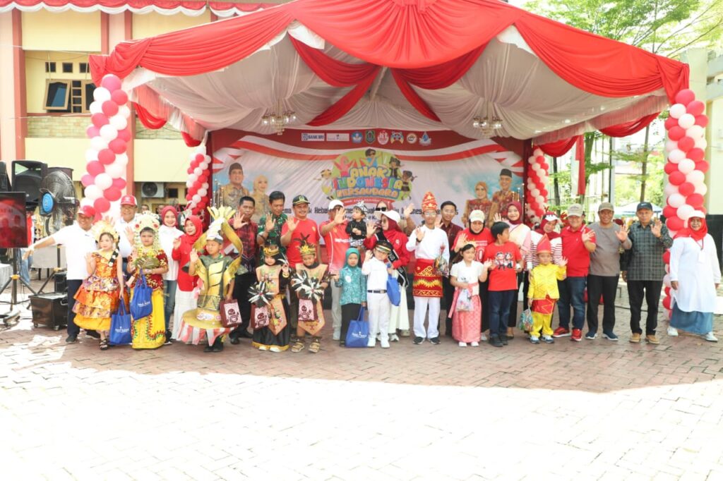 Mengusung tema “Anak Hebat Indonesia Kuat, Menuju Indonesia Emas 2025” dalam karnaval ini, anak-anak tampak menampilkan berbagai kostum ceria dan menarik, mulai dari pakaian adat, pakaian berbagai profesi hingga pakaian inovatif yang melambangkan kecintaan kepada Tanah Air.
