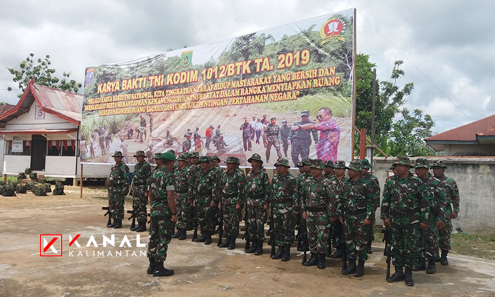 BUNTOK, Kegiatan karya bakti TNI Kodim 1012 Buntok tahun 2019 yang dibuka Korem 102/Pjg Palangkaraya kiranya ikut serta mempercepat proses pembangunan di Barito Selatan (Barsel).