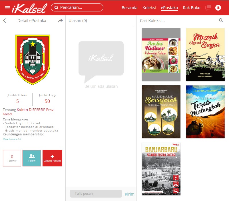Mereka yang enggan ke luar rumah dengan mudah bisa mengakses iKalsel untuk mengisi waktu luangnya. Agar bahan bacaan yang tersedia semakin bervariatif, Dinas Perpustakaan dan Kearsipan (Dispersip) Provinsi Kalimantan Selatan mulai menambahkan karya penulis banua ke dalam aplikasi iKalsel.