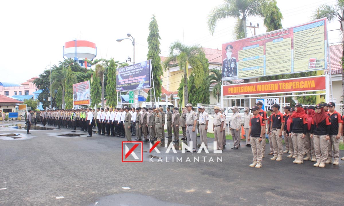 AMUNTAI, Kepolisian Resort Hulu Sungai Utara (HSU) menggelar apel konsolidasi bersama jajaran aparat TNI, Polri, Satpol PP, Dishub, BPBD dan instansi terkait lain di halaman Mapolres HSU, Kamis (13/6).
