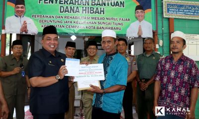 BANJARBARU, Walikota Banjarbaru H Nadjmi Adhani serahkan bantuan hibah Rp 50 juta untuk perbaikan Masjid Nurul Fajar Beruntung Jaya, Kelurahan Sungai Tiung Kecamatan Cempaka, Selasa (9/1)....