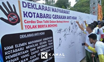 KOTABARU, Ratusan orang berkumpul di kawasan Siring Laut Kotabaru, Minggu (18/3) pagi, gelar deklarasi anti hoax kepada masyarakat secara luas oleh Polres Kotabaru. Deklarasai kini diikuti...