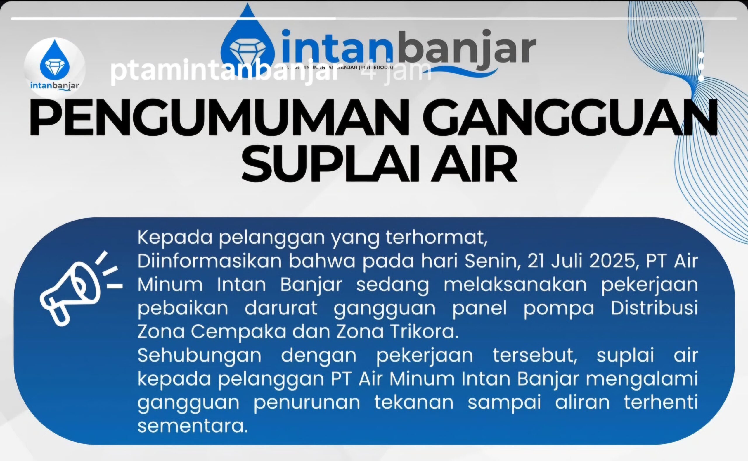 KANALKALIMANTAN.COM, BANJARBARU - PT Air Minum (PTAM) Intan Banjar (Perseroda) melalui akun resminya mengumumkan perubahan jadwal layanan kantor selama libur… Read More