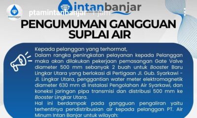 KANALKALANTAN.COM, BANJARBARU – PT Air Minum (PTAM) Intan Banjar mengumumkan adanya gangguan distribusi air yang akan terjadi selama sehari penuh pada Selasa (29/4/2025) malam. Pada pengumuman...