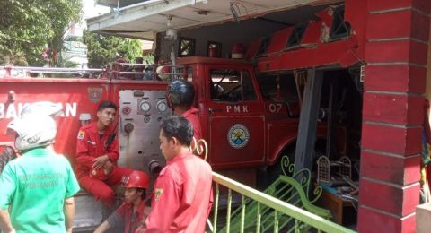 Mobil PMK Pos Rajawali yang mengalami rem blong dan menabrak rumah warga (Mediaetam.com/Idham)