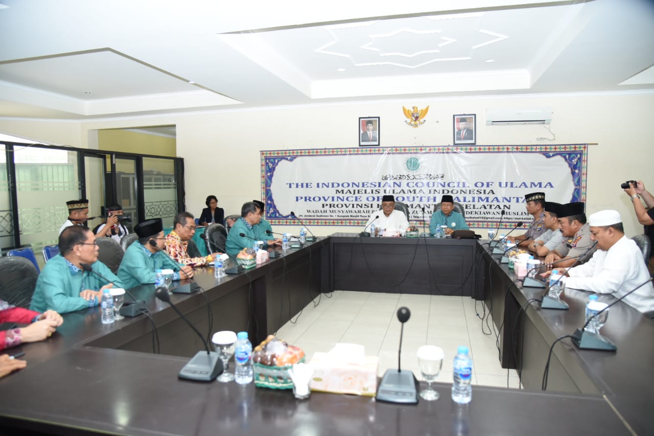 Dipimpin Kapolda Kalsel Irjen Pol Yazid Fanani pertemuan yang juga sekaligus mempererat tali silaturahmi ini berlangsung di aula kantor MUI Kalsel, Mesjid Sabillal Muhtadin Banjarmasin, Minggu (2/2/2020) pukul 11.00 Wita.