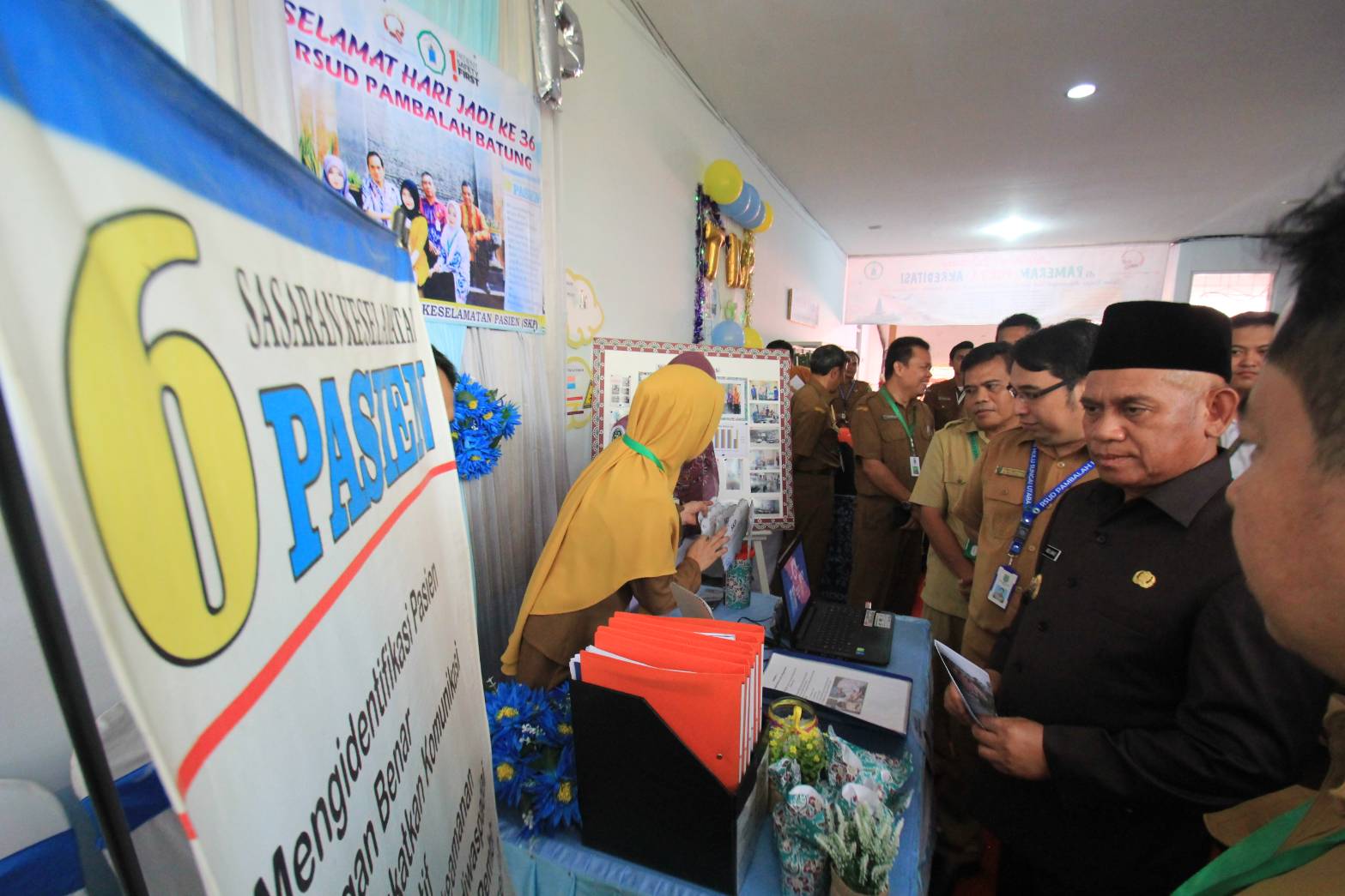 AMUNTAI, Sebanyak 15 stand hadir dalam gelaran pameran Pokja Akreditasi yang diselenggarakan RSUD Pambalah Batung Amuntai, Senin (28/10). Kegiatan pameran atau “Pit Stop†akreditasi rumah sakit ini digelar selama tiga hari, diselenggarakan dalam rangka memperingati Hari Jadi ke-36 RSUD Pambalah Batung Amuntai.