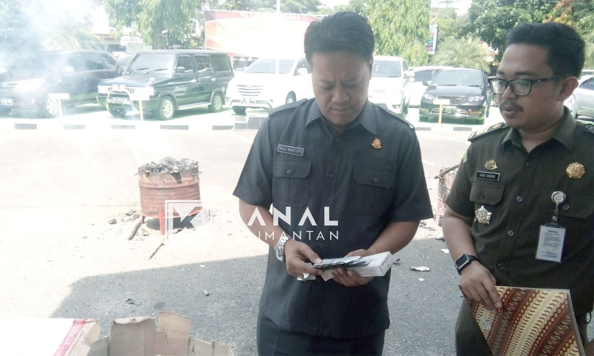 MARTAPURA, Mengantisipasi agar tak disalahgunakan atas barang bukti yang sudah berkekuatan hukum tetap, Kejaksaan Negeri (Kejari) Kabupaten Banjar memusnahan barang bukti di halaman kantor Kejari Kabupaten Banjar, Selasa (6/11).