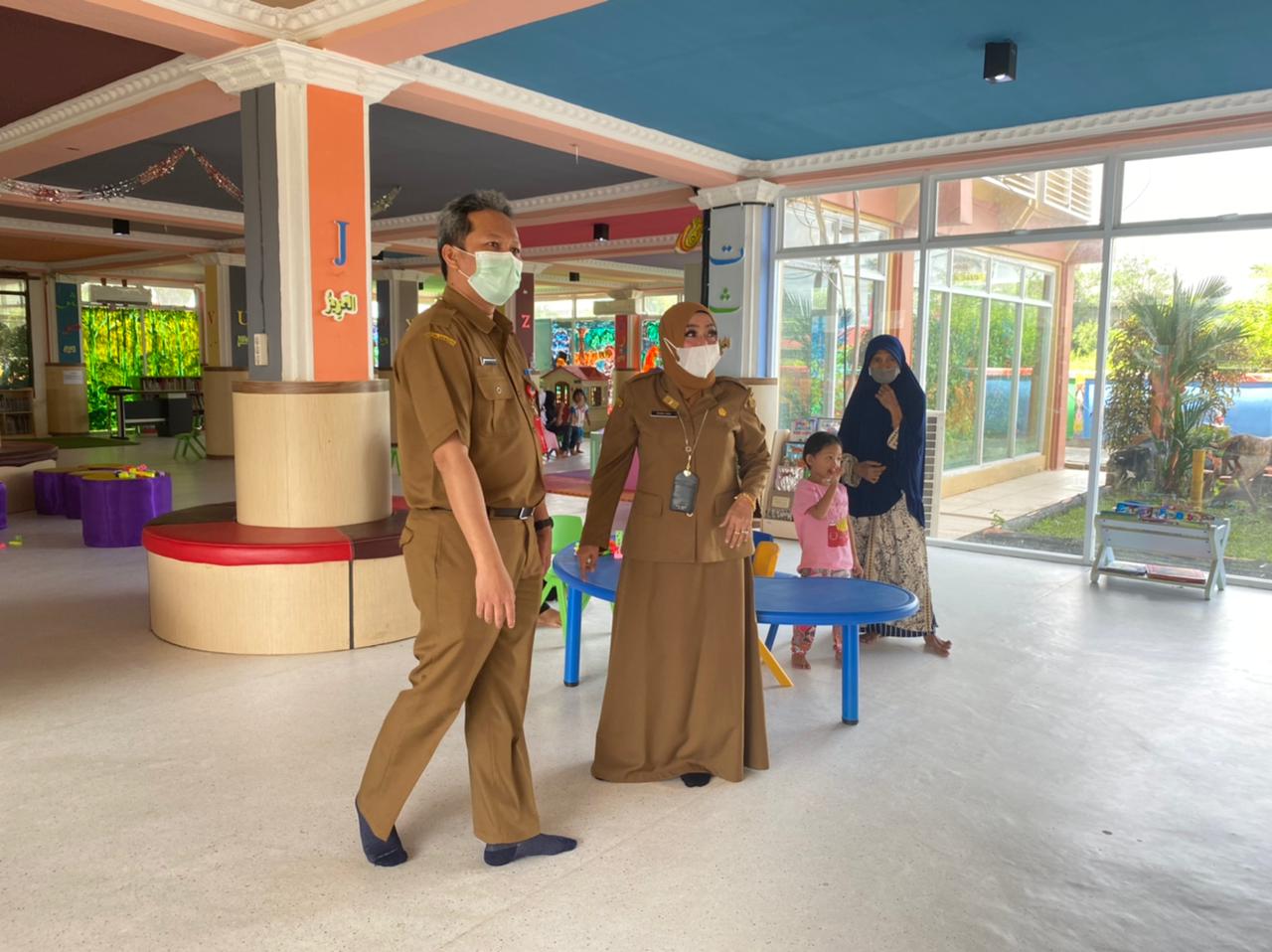 Kadinkes Banjar dr Diauddin saat berada di Kids Library Perpustakaan Palnam. Foto: dispersipkalsel