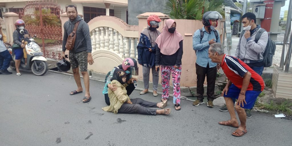 Seorang pengendara sepeda motor Itti (55) sempat tidak sadarkan diri karena ketika keluar pintu gerbang Komplek Cempaka Sari tak bisa menghindari tabrakan.