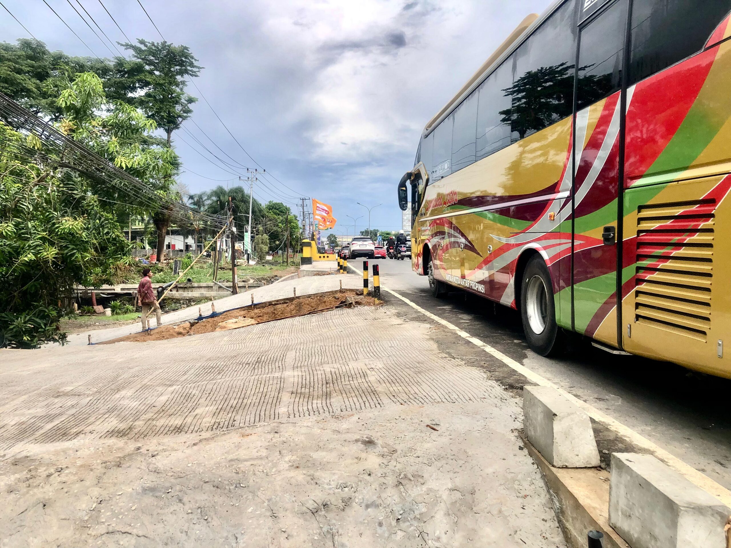 “Akses ke tempat kami itu tidak sesuai dengan gambar yang dibikin pihak BPJN, rencana awal dibikin rata dari atas jalan, baru menurun sampai teras,” ujar Gatot, Senin (3/11/2025) siang.