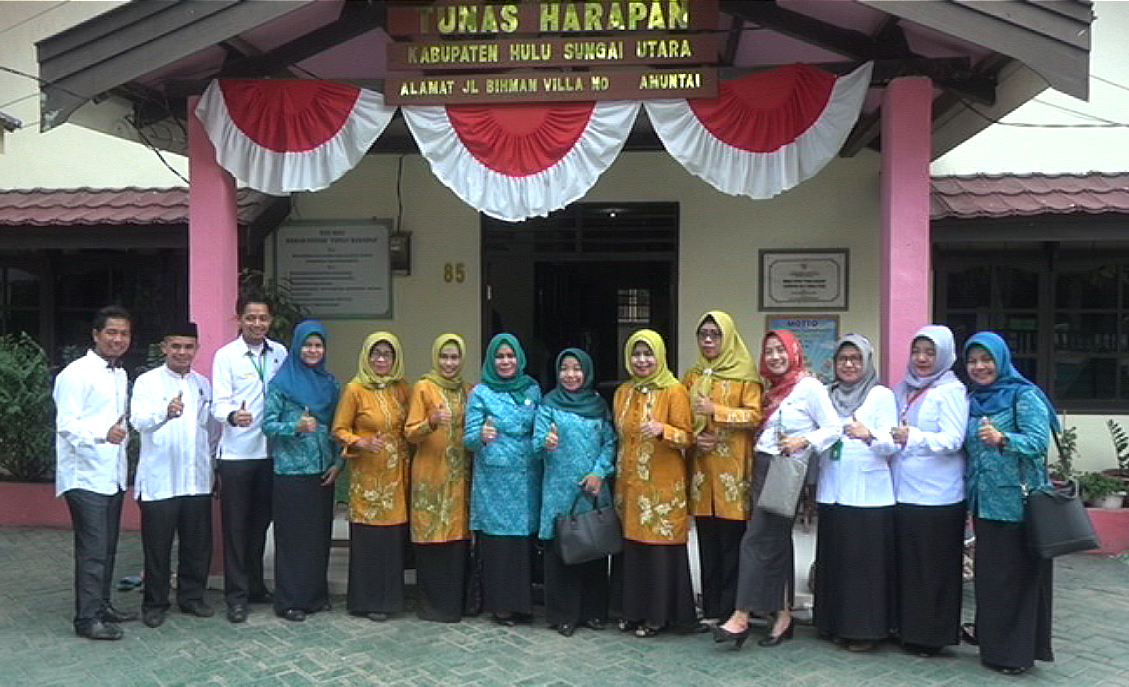 Ketua TP PKK kabupaten HSU Hj Anisah Rasyidah Wahid berkesempatan mengajak tim penilai untuk mengunjungi Rumah Pintar Tunas Harapan di sela-sela kegiatan tersebut. (dew)