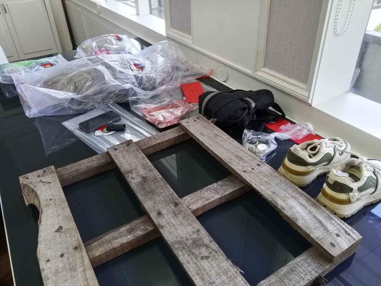 Adapun barang bukti yang diamankan di antaranya 2 buah handphone Android yang dibuang pelaku di Jalan A Yani Km 15, dompet, kalung dan cincin emas, celana dalam, tas, sepatu, kunci motor Vario, earphone dan charger, spageti dan telur, pakaian, kartu identitas, 1 mobil Rush, 1 motor Honda Vario, serta papan kayu yang digunakan untuk menutupi korban. (Kanalkalimantan.com/fahmi)