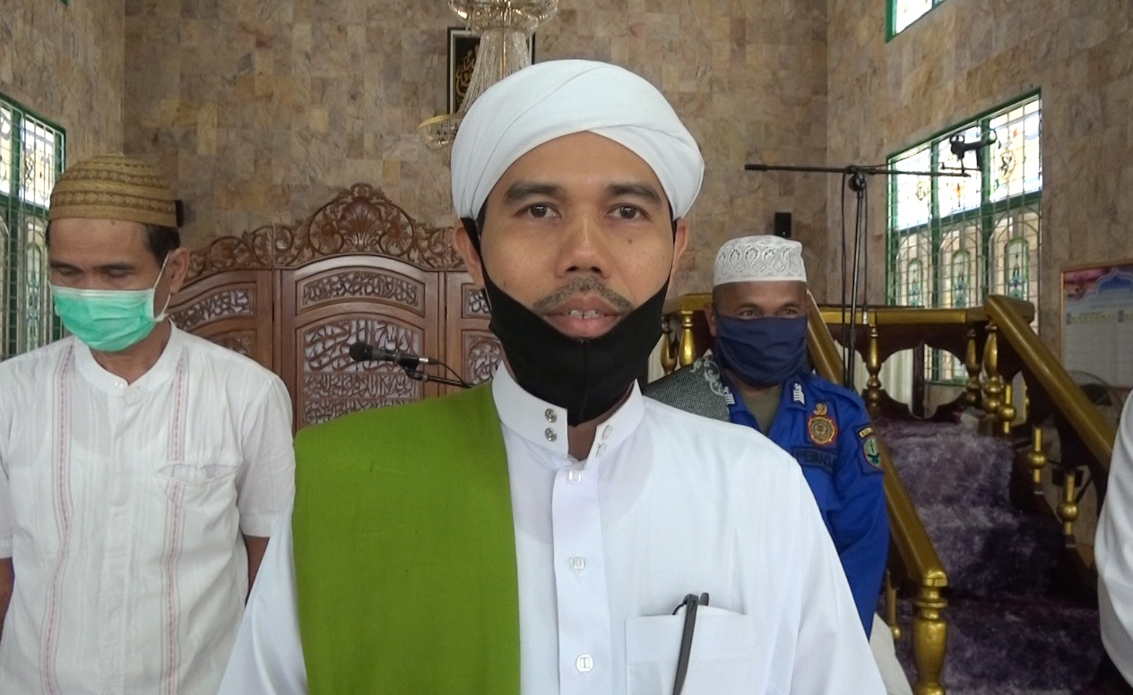 “Pelaksanaan sholat Jumat tetap dilakukan imbauan yang berkenaan dengan pencegahan penularan Covid-19 melalui pengumuman dan isi khotbah, serta memperpendek proses sholat Jumat itu sendiri,” ujar imam tetap masjid terbesar di Kabupaten HSU ini.